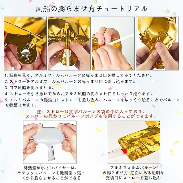 ④ 本製品は、環境に配慮した無害なpvc素材を使用しています。 お子様の手の届かないところに保管してください。 アルミフィルムバルーンは複数回使用することができます。