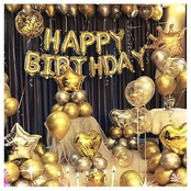 誕生日飾り付け バースデーバルーン happy birthday 誕生日風船 バースデー 飾り 多種な色や形のあるバルーンセット (ゴールド×シルバー)