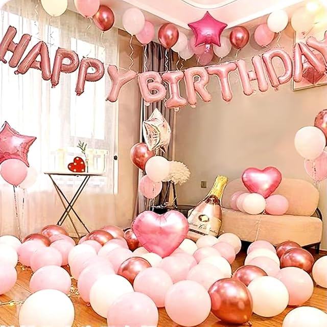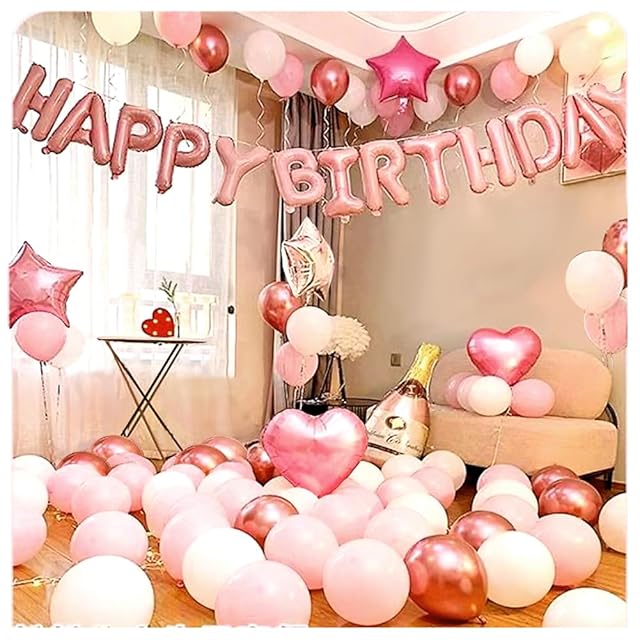 誕生日飾り付け バースデーバルーン happy birthday 誕生日風船 バースデー 飾り 多種な色や形のあるバルーンセット (ローズゴールド)