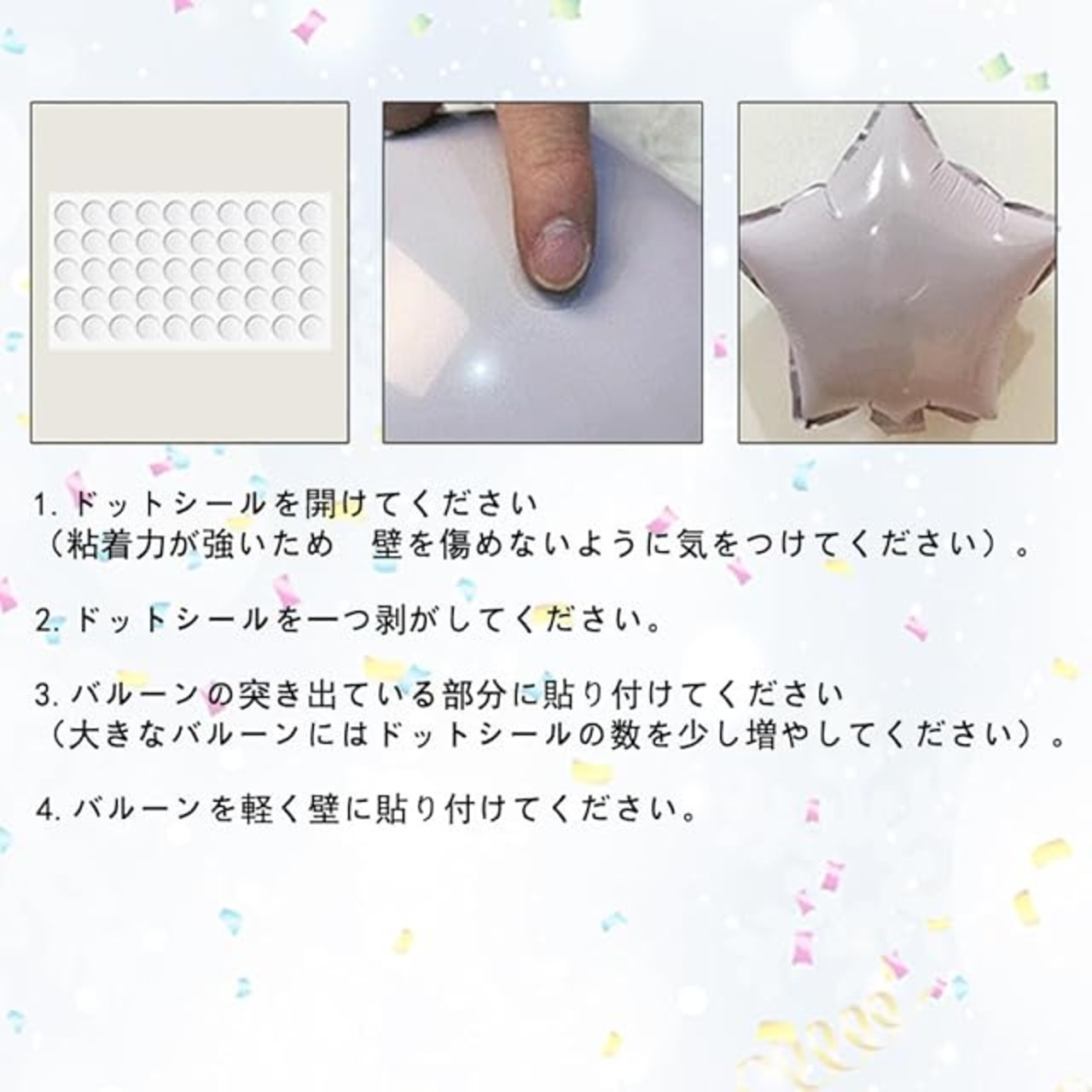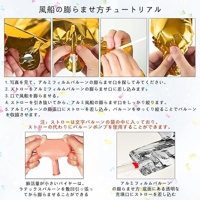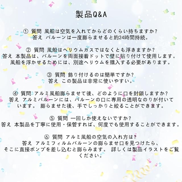④ 本製品は、環境に配慮した無害なpvc素材を使用しています。 お子様の手の届かないところに保管してください。 アルミフィルムバルーンは複数回使用することができます。