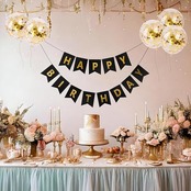 【セット内容】HAPPY BIRTHDAYガーランド(16.5*11.5cm);紙吹雪風船5個(約30cmゴム付き);カールリボン1個(幅5mm×長さ5m)。