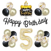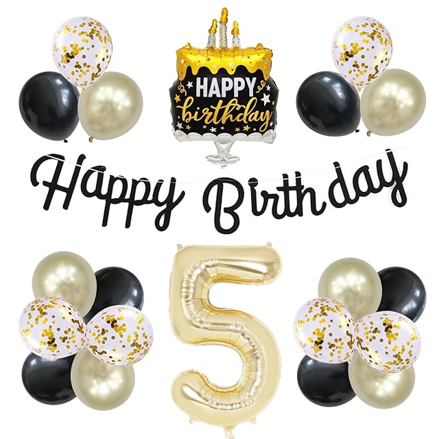 5歳 誕生日 バルーン 風船 セット 大きい 40inch ライト ゴールド 数字 バルーン 5 付け 約100cm シンプル 黒金 ケーキ 誕生日 飾り ハッピー バースデー HAPPY BIRTHDAY ガーランド 12inch ゴールド ブラック 風船 18pcs 飾り付け セット 子供 女の子 男の子 大人