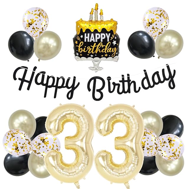 33歳 誕生日 バルーン 風船 セット 大きい 40inch ライト ゴールド 数字 バルーン 33 付け 約100cm シンプル 黒金 ケーキ 誕生日 飾り ハッピー バースデー HAPPY BIRTHDAY ガーランド 12inch ゴールド ブラック 風船 18pcs 飾り付け セット 子供 女の子 男の子 大人