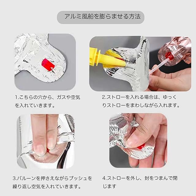 高品質素材で安心 : アルミフィルムバルーンと厚手のラテックス素材を採用し、光沢感があり丈夫で破れにくい設計。膨らませた後も長時間形を保ち、安心してお使いいただけます。