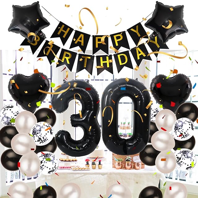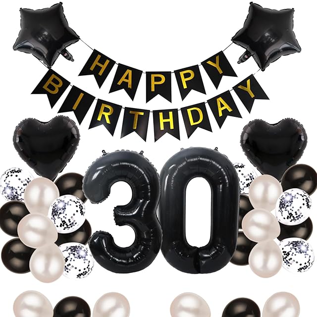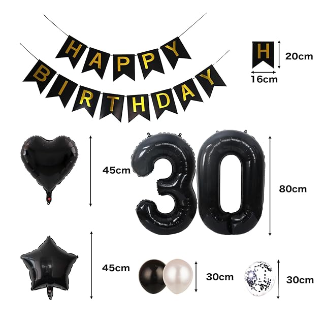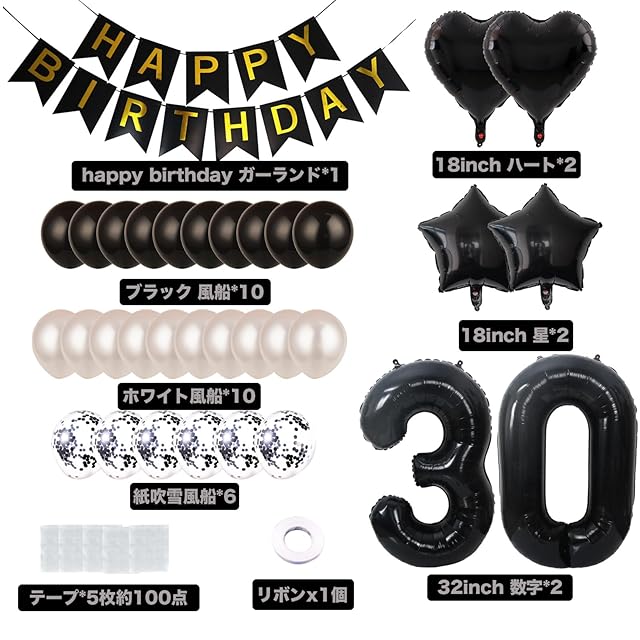 30歳 誕生日 バルーン 風船 飾り付け セット 数字バルーン 20 HAPPY BIRTHDAYガーランド ハート風船 紙吹雪風船 バースデーバルーン 大人 男の子 女の子 ブラック