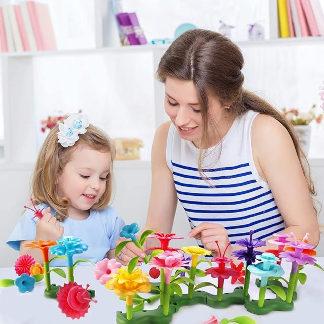 商品名:フラワーブロック 花 おもちゃ 立体パズル プラスチック 知育玩具 組み合わせ はめこみ 組み立て 積み木 おしゃれ 知育 おもちゃ ままごと ごっこ遊び DIY 組み立てセット 女の子 男の子 6+ プレゼント ラッピング こどもの日 おんなのこのおもちゃ