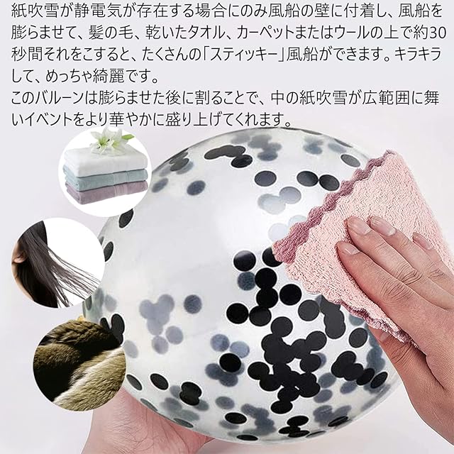 【注意事項】①膨らませる前に風船を伸ばして、膨らませた後に丸い風船ができるようにします。②過充填しないでください。③日焼け、過熱、鋭利なもの、過度の摩擦を避けてください。④膨張後、一定の色の違いが現れますが、色の効果はより良くなります。 【返品、交換について】配送途中の破損などの事故がございましたら、当社まで連絡下さい。破損部分等 画像を送っていただければ確認後、交換または返金いたします。