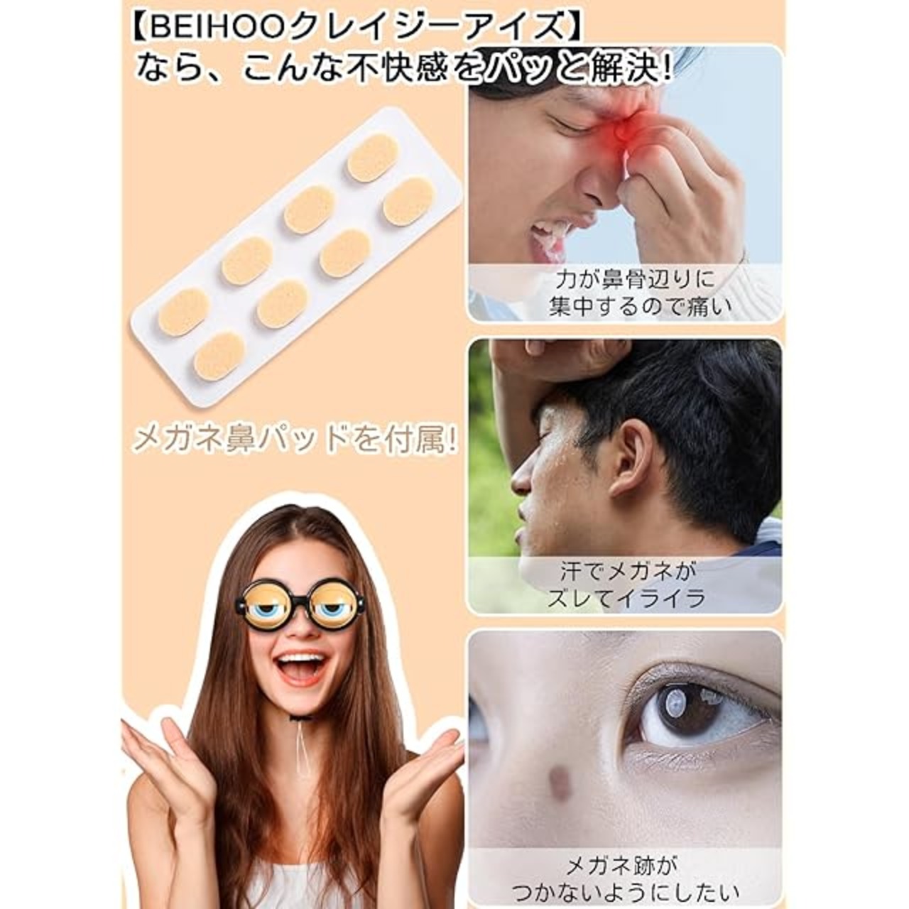 商品名:[BEIHOO] ザコシメガネ クレイジーアイズ おもしろ パーティー グッズ 鼻パッド付き 痛くない 滑り止め 余興 忘年会 イベント 誕生日 歓送迎会 万聖節 クリスマスプレゼント おもちゃ (グリーン)