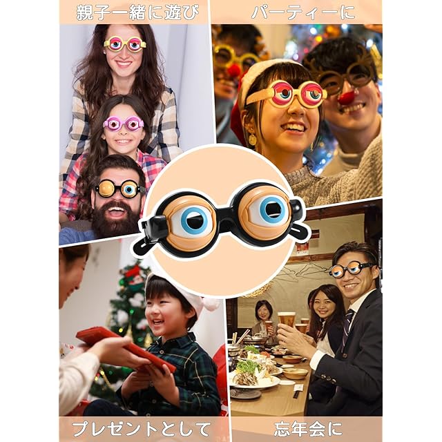 笑いを誘うクレイジーアイズ仕様のユニークなメガネ!パーティーやイベント、忘年会、結婚式の二次会など、どんなシーンでも盛り上がること間違いなし。