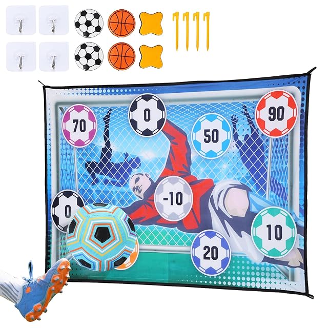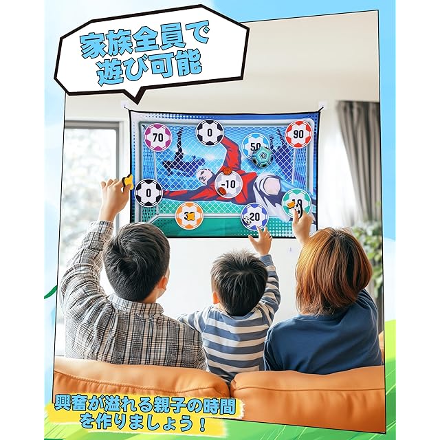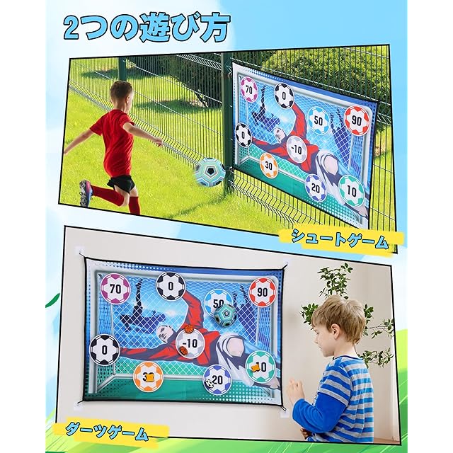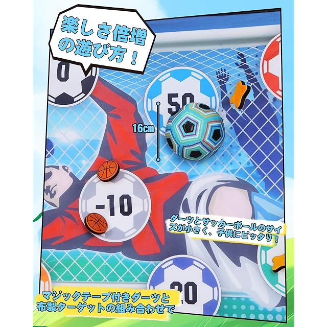 【2 in 1遊び方】この布製ターゲットは2種類の遊び方があります。一つはサッカーシュートで、もう一つはダーツです。ターゲットには、様々な数字と点数が印刷されており、それにより、友達や家族と一緒に試合をすることができます。