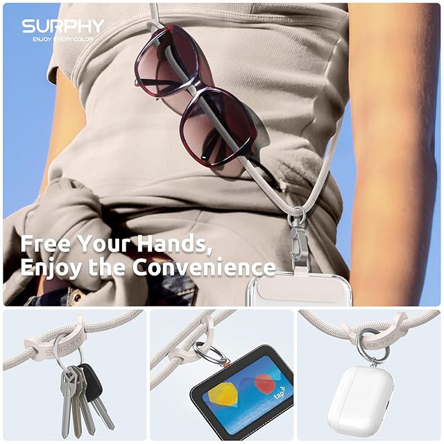 [SURPHY] 携帯ストラップ 首掛け/肩掛け/斜め掛け (ラベルパッチ 付き*2枚 スマホ ストラップ ネックストラップ 長さ調整可能 忘れ物防止 全機種対応 (ストーングレイ)