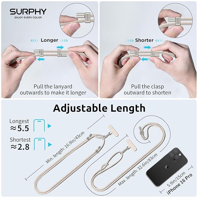 [SURPHY] 携帯ストラップ 首掛け/肩掛け/斜め掛け (ラベルパッチ 付き*2枚 スマホ ストラップ ネックストラップ 長さ調整可能 忘れ物防止 全機種対応