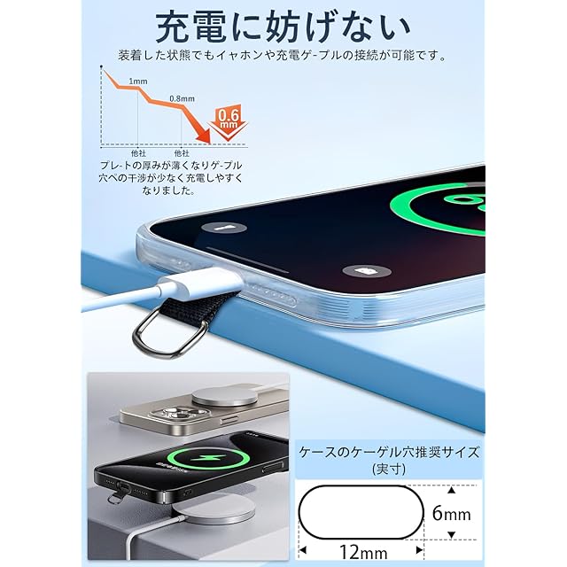 【極薄設計】耐荷重:約5 kg。丈夫なので、長期間繰り返し使用できます。本体の厚みが非常に薄い、ケーブル充電にワイヤレス充電にも邪魔しません。
