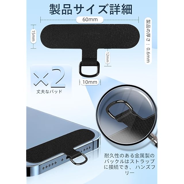 商品名:[ZXZone] ストラップホルダー スマホ ストラップホール ファブリックパッチ ネックストラップ 外付け 落下防止 首掛け 斜めがけ 肩掛け 首かけ ショルダー 肩かけ 携帯ストラップ iphone android スマホアクセサリ薄型 一体成形 着脱簡単断裂を防ぐ 耐久性 全機種対応ファブリック黒 ブラック (ブラック 2PCS)
