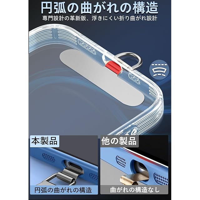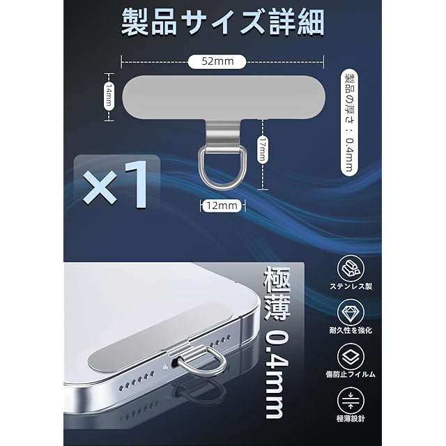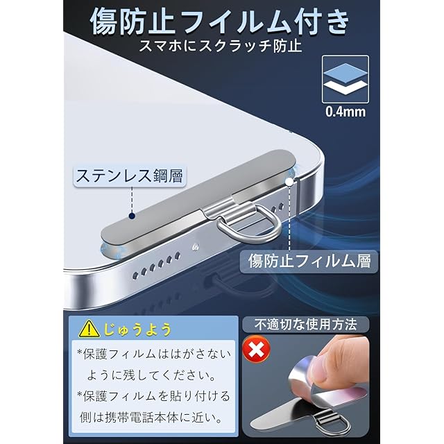 商品名:ZXZone ストラップホルダー【傷防止フィルム加工】 スマホストラップ 折り曲げても浮きにくい設計・極薄0.2mmの金属製タグパッチ採用 落下防止首掛け斜めがけ肩掛け携帯ストラップ iphone android スマホアクセサリ全機種対応 (シルバー-TD)