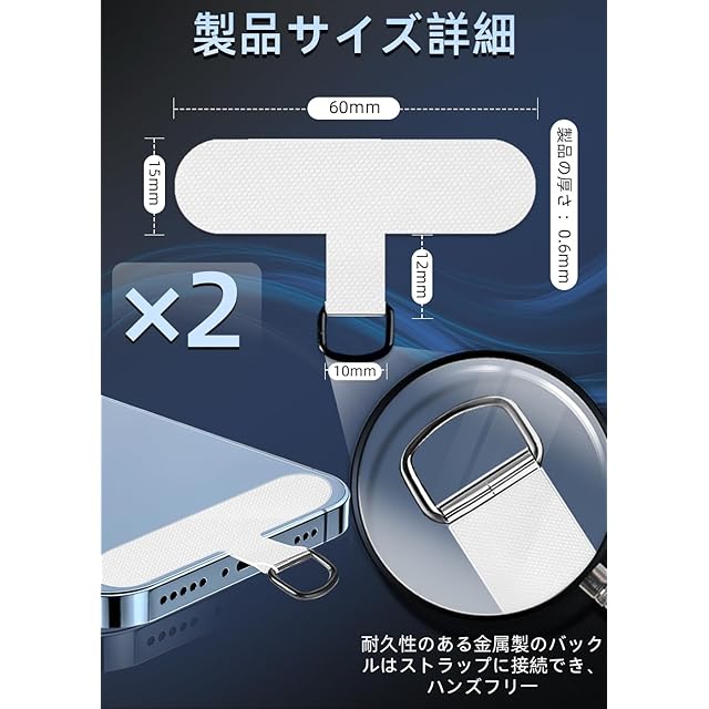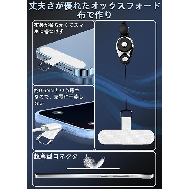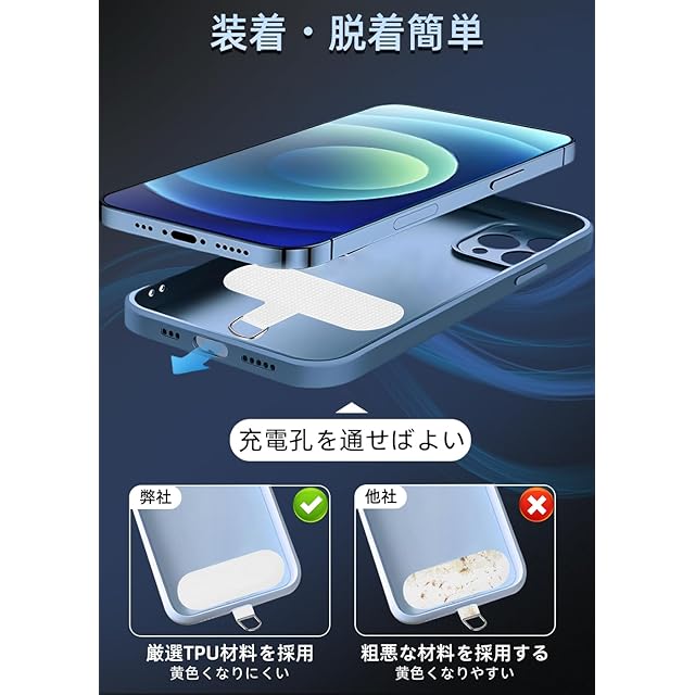 【装着簡単・充電に干渉しない】タグパッチをケースとスマホの間に挟んで、ストラップホールが外付けなので、自分好みに合わせて、ネックストラップやハンドストラップに装着できます。わずか0.6mmの薄さで、ケーブル/ワイヤレス充電に邪魔しません。