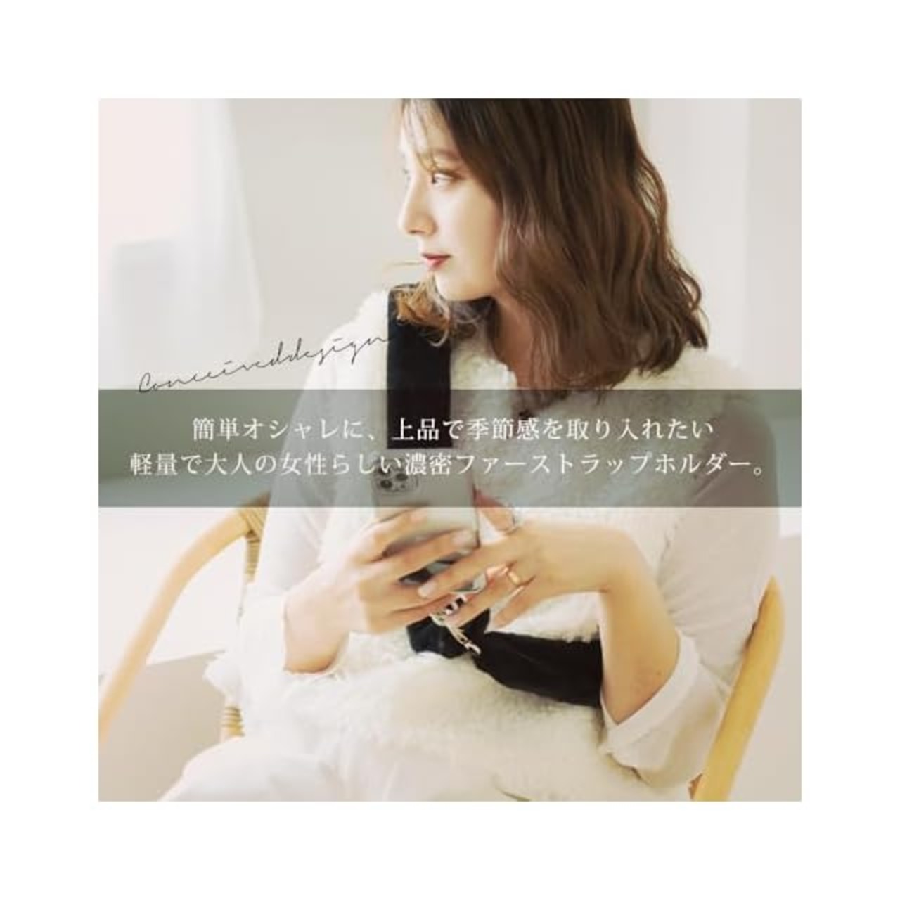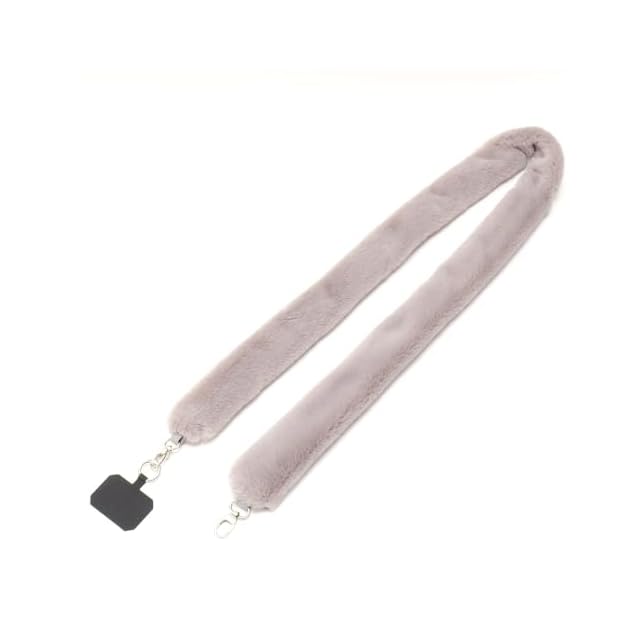 [リネーム] フリルストラップ スマホ ショルダー チュール アウトドア 首掛け かわいい 可愛い (グレー(ファー))
