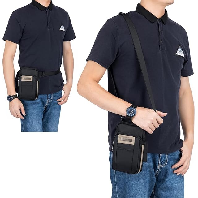SPAHER スマホポーチ メンズ 小物入れ ウエストポーチ 防水 ベルトポーチ 小さめ マルチポーチ 旅行 アウトドア 登山 多機能収納 携帯 ガジェット ショルダーストラップ付き カラビナ付き 4層 ブラウン