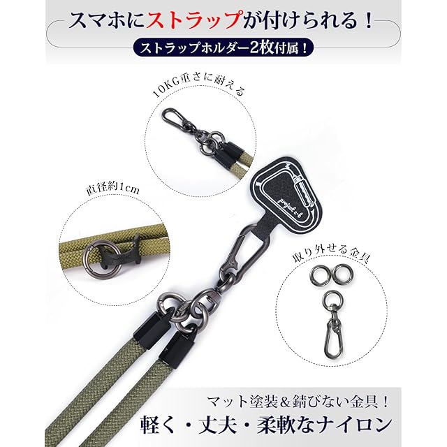 ★【優れた素材】ネックストラップは優れたナイロン素材で作られた。柔らかくて、引っ掛かりにくいです。、首や肩を傷つけません。ストラップホルダーはアップグレードされた素材を採用して、丈夫で2倍以上の耐久性を強化されます。付属のストラップホルダでストラップホールがないスマホにもストラップを取り付けて使用できます。