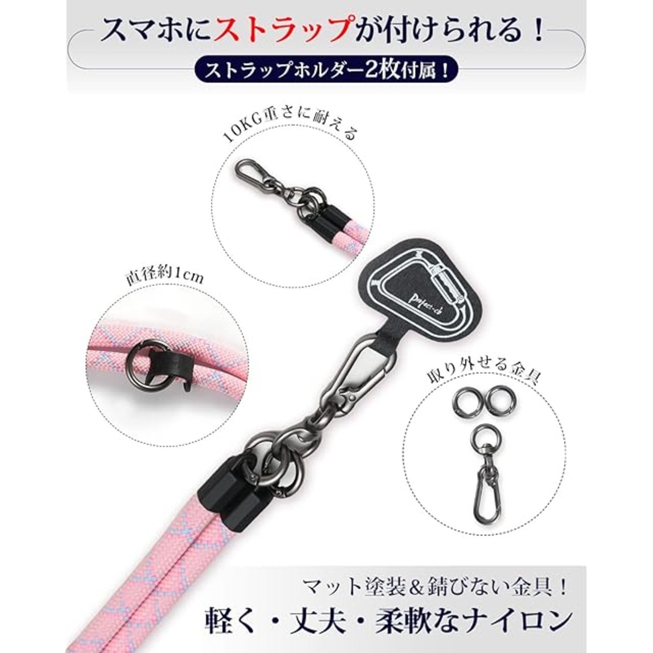 商品名:[project-cb] スマホストラップ ストラップホルダー *2 首掛け ショルダー 斜めがけ 極太 携帯ストラップ アウトドア 落下防止((ピンク)