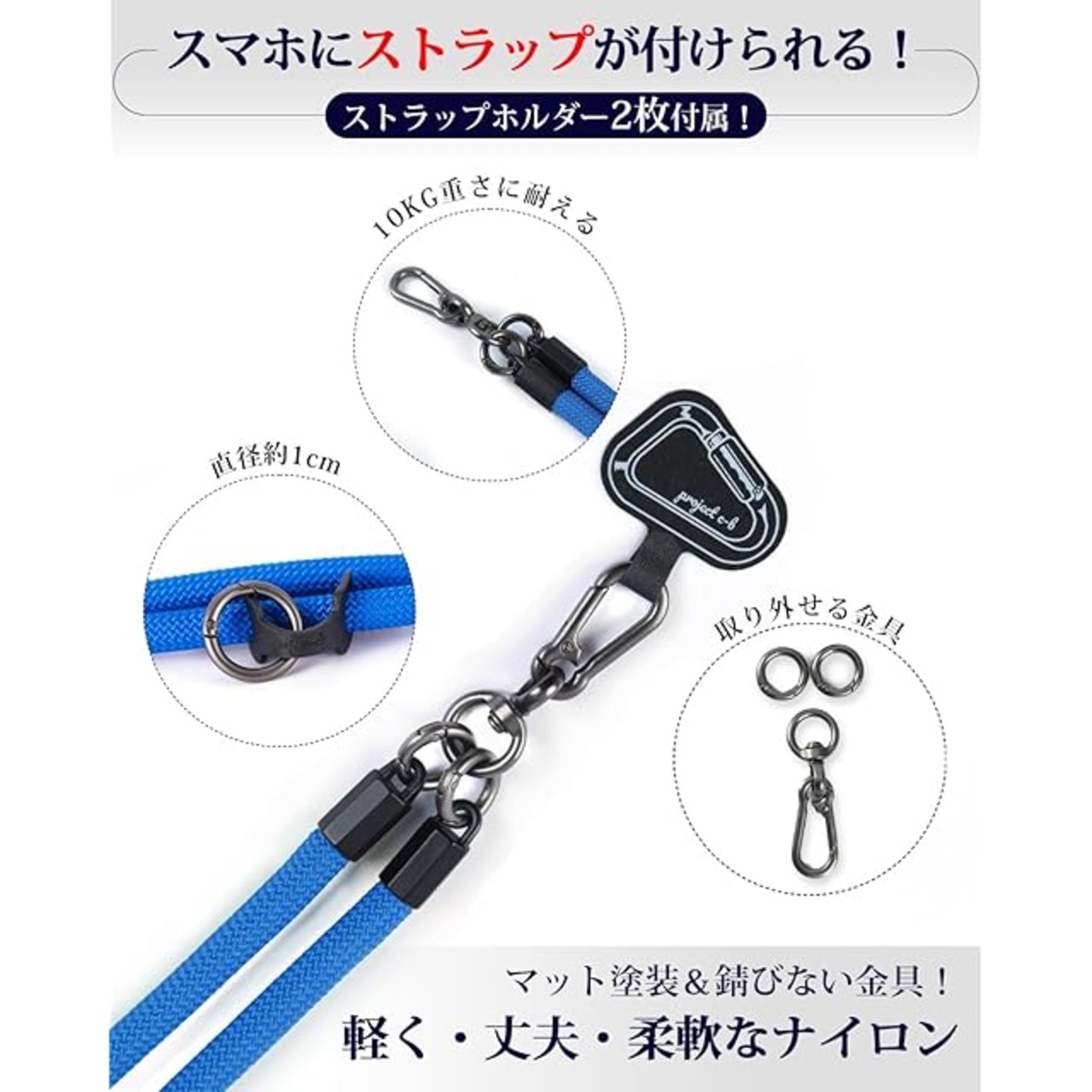 商品名:[project-cb] スマホストラップ ストラップホルダー *2 首掛け ショルダー 斜めがけ 極太 携帯ストラップ アウトドア 落下防止(ブルー)