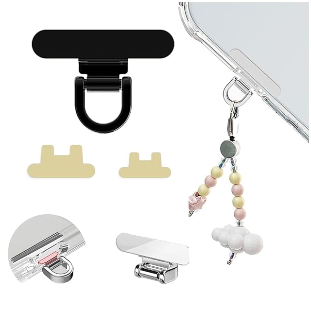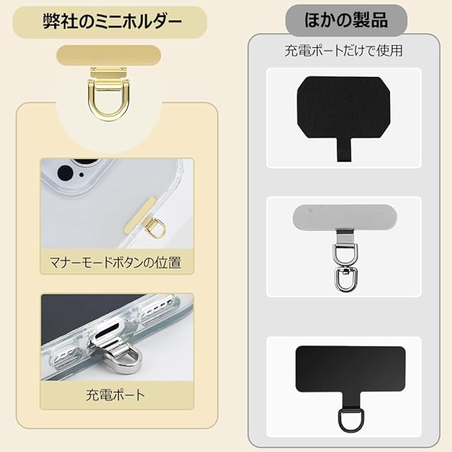 商品名:スマホ ストラップホルダー 超ミニタイプ【2025年革新設計・マナー穴きに装着・320度回転】2枚傷防止フィルム付き 極薄0.2mm 浮きにくい折り曲がれ設計 ステンレス製 金属製タグパッチ 携帯ストラップホルダー 薄型 丈夫 全機種対応 充電影響なし 落下紛失防止