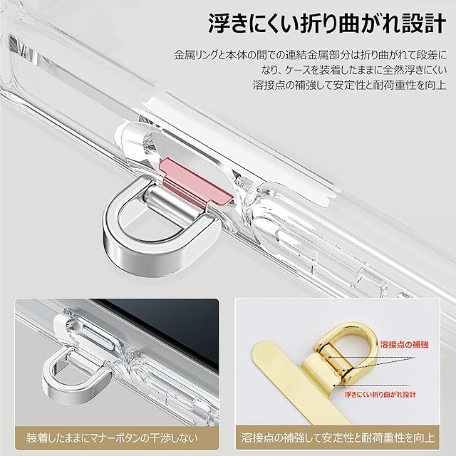 【320°上下回転、曲がれ設計】:使用の実用性と便利さを両立させるように、ストラップホルダーは320°上下回転と曲がれ設計の機能をもって、上下に320°自由に回転できるので、スマホストラップの使用がよりスムーズで便利になります。浮きにくい折り曲がれ設計、金属リングと本体の間での連結金属部分は折り曲がれて段差になり、ケースを装着したままに全然浮きにくい。