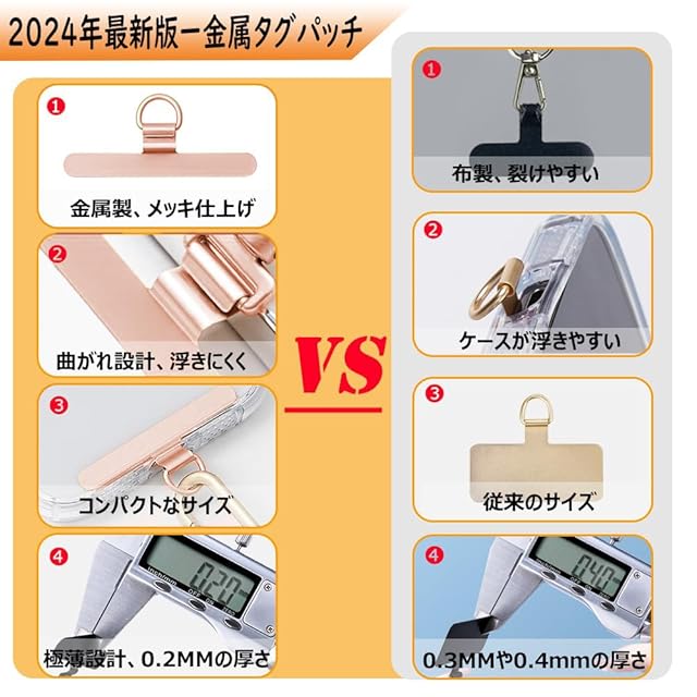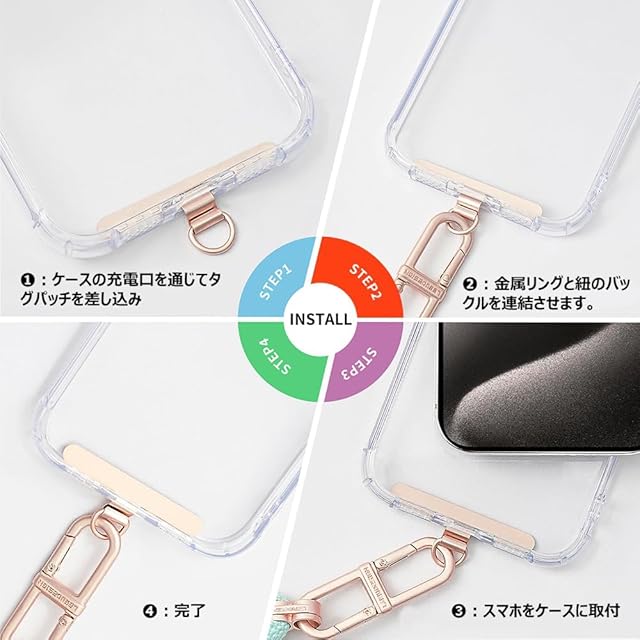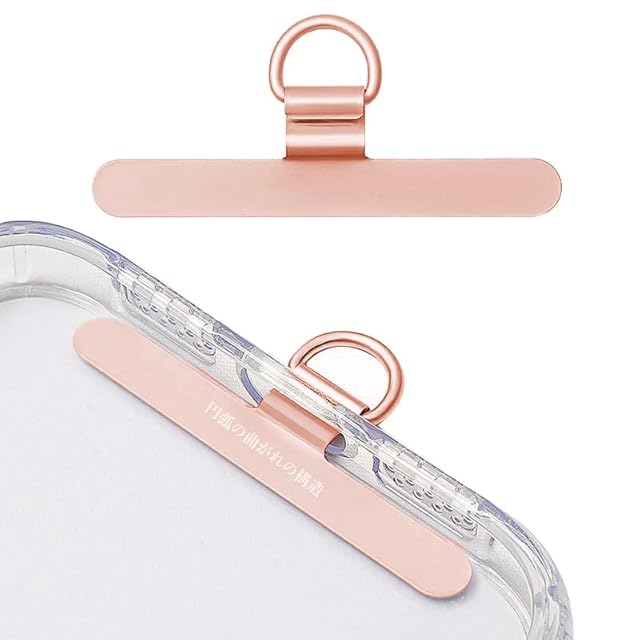 商品名:スマホ ストラップホルダー 【極薄0.2mm・浮きにくい折り曲がれ設計・ステンレス製】金属製タグパッチ 携帯ストラップホルダー 薄型 丈夫10kgまでの荷重量 スマホケースに挟む 全機種対応 充電影響なし 落下紛失防止 (ローズピンク)