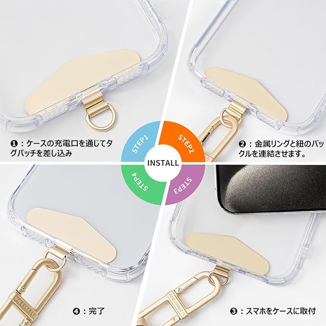 商品名:スマホ ストラップホルダー 【極薄0.2mm・浮きにくい折り曲がれ設計・ステンレス製】金属製タグパッチ 携帯ストラップホルダー 薄型 丈夫10kgまでの荷重量 スマホケースに挟む 全機種対応 充電影響なし 落下紛失防止 (三角ー金)