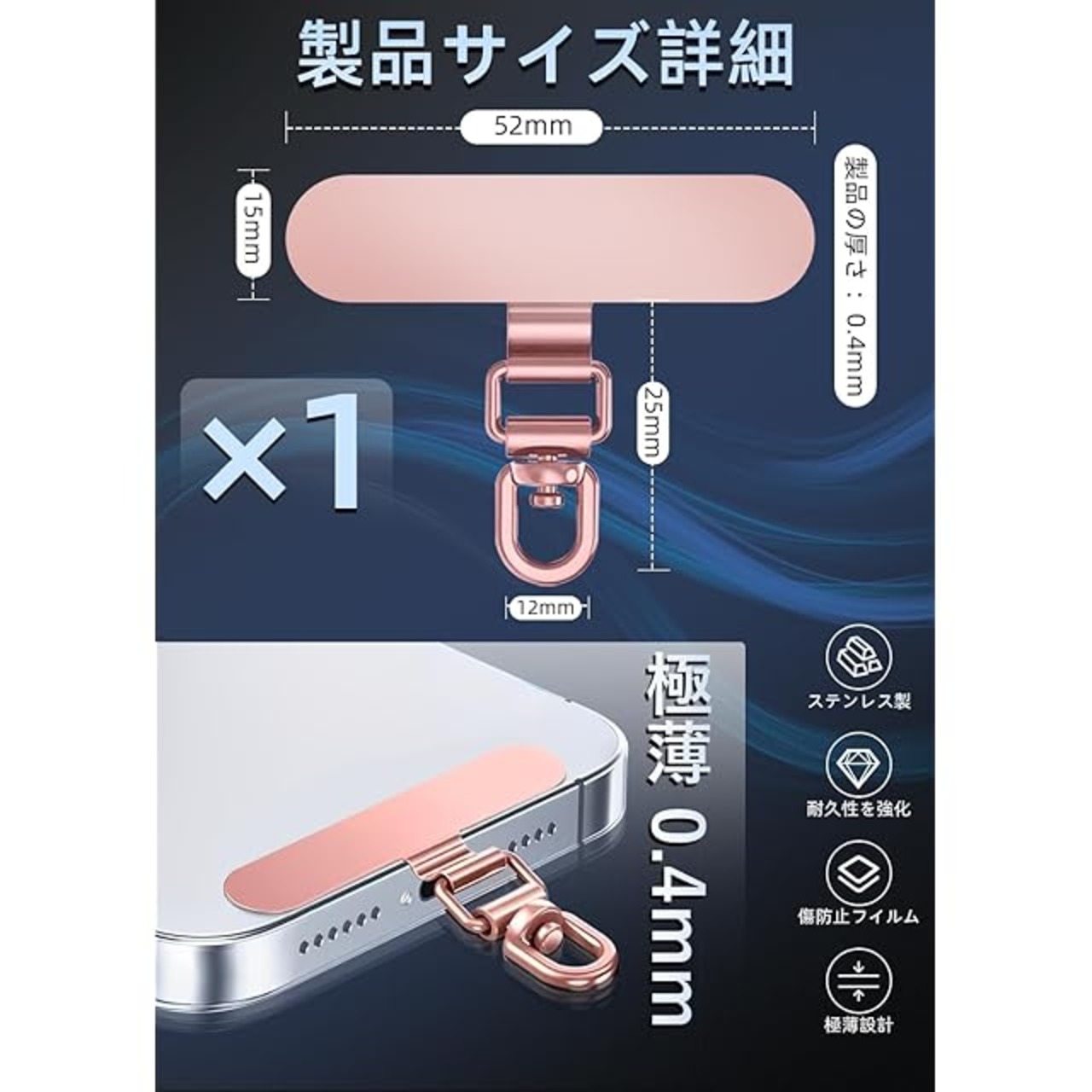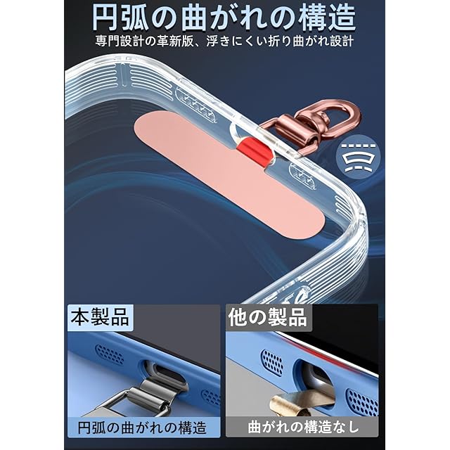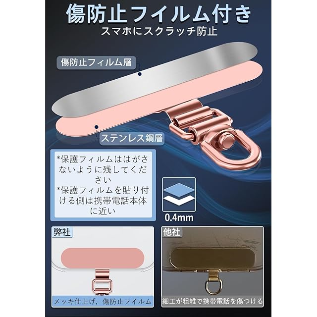 商品名:ZXZone ストラップホルダー【傷防止フィルム加工】 スマホストラップホルダー 折り曲げても浮きにくい設計・極薄0.2mmの金属製タグパッチ採用 携帯ストラップ 落下防止 首掛け 斜めがけ 肩掛け iphone android スマホアクセサリ全機種対応 (ローズゴールド-TS)
