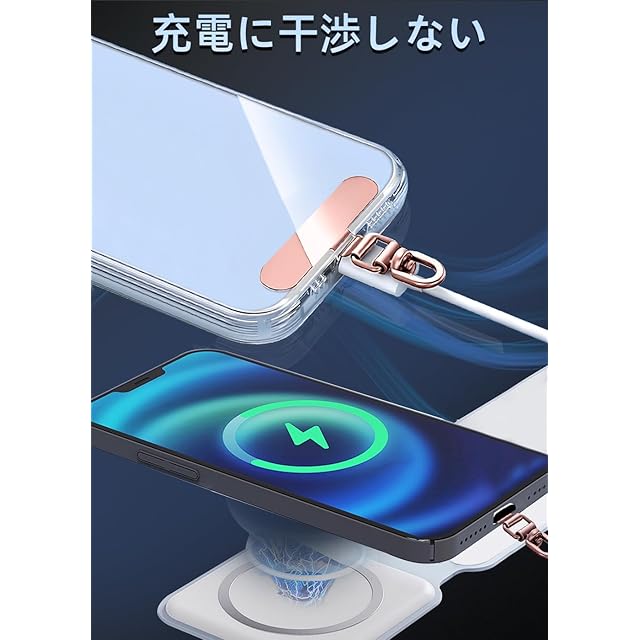 【装着簡単・充電に干渉しない】ケースとスマホの間にタグパッチを挟むだけで簡単に装着可能。ストラップホールが外付けされており、ネックストラップやハンドストラップをお好みで取り付けられます。**薄型設計(0.4mm)**により、ケーブル充電やワイヤレス充電にも干渉しません。防水性能があり、汚れや埃は簡単に拭き取れます。
