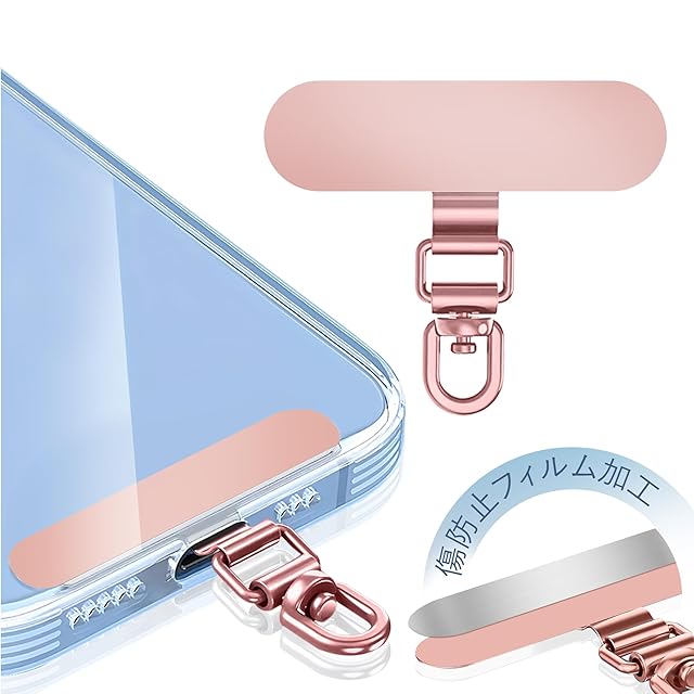 ZXZone ストラップホルダー【傷防止フィルム加工】 スマホストラップホルダー 折り曲げても浮きにくい設計・極薄0.2mmの金属製タグパッチ採用 携帯ストラップ 落下防止 首掛け 斜めがけ 肩掛け iphone android スマホアクセサリ全機種対応 (ローズゴールド-TS)
