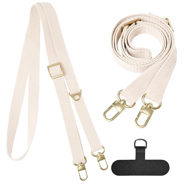 [Shirizu] スマホショルダー 斜めがけ首掛け肩掛け 綿素材 ショルダーストラップ 携帯ストラップ 幅2cm スマホストラップ 長さ調節可能 Strap ストラップ 1本+タグパッチ1枚入り ネックストラップ ショルダー 落下防止 外出が身軽に(Eホワイト)