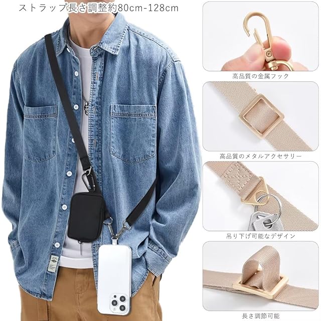 【スマホ首掛けストラップ 紛失防止に】:シンプルで合わせやすいデザインのネックストラップです。携帯ストラップは丈夫な金属製の留め具が付いています。スマホの落下防止に役立ちます。また、ショルダーストラッププやネックストラップなど、お好みに合わせてマルチな使い方ができます。 【セットしやすい】:工具不要でセットできる携帯ストラップです。ストラップホルダーをケースの充電穴に通し、スマホをはめて、ストラップを取り付けるだけでセット完了。※ ご注意:コネクタの周りまで覆わないスマホケースには対応できません。 【長さ調節可能】長めのショルダーストラップはお好きな長さに調節可能。上にスライドで短めに、下にスライドで長めに調節できます。ショルダーの長さ調節可能、長さはちょうどいい快適、いろいろな身長に対応できます。 【ご注意】○商品のお色は撮影時の環境、ディスプレイの発色などにより実物と多少の違いが生じることがございます。予めご了承下さいませ。【安心】出荷時の検品には万全を期しておりますが、万一、不良やお気づきの点がございましたら、【出品者に連絡】をクリックして弊店宛まで直接にお問合せ下さい。
