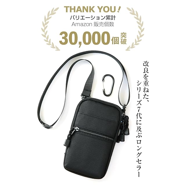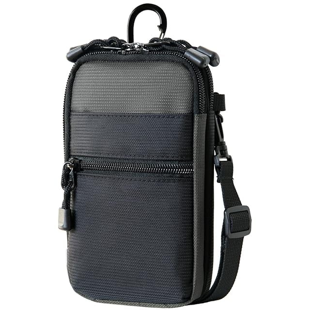 <b>◆スマートフォンの収納にちょうど良いサイズ感</b><br><br> ● スマホやモバイルバッテリー、小さい財布、カギなどをコンパクトに携帯するのに、ちょうどいいサイズ感のポーチ。<br> ● メイン収納が2室あり、スマートフォンや携帯電話を2台を別々に収納できます。<br> ● 2箇所の大きなジッパーポケットとと、フロントのジッパーポケットに小物をわけて収納することができます。<br><br> <b>◆使い方いろいろ</b><br> ・携帯電話ポーチとして<br> ・カラビナぽーちとしてベルトループにひっかけて<br> ・ベルトループにベルトを通して装着br> ・ショルダーとして<br> ・スマホぽーちとして
