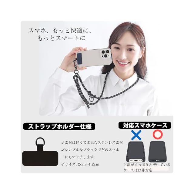 ✅ 【耐久性の高いストラップホルダー】 軽量かつ丈夫なステンレス製。安心してスマホを取り付けられます。
