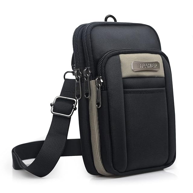 [SPAHER] スマホポーチ メンズ ポーチ 小物入れ ウエストポーチ 防水 ベルトポーチ 小さめ マルチポーチ 旅行 アウトドア 登山 多機能収納 携帯 ガジェット ショルダーストラップ付き カラビナ付き 4層