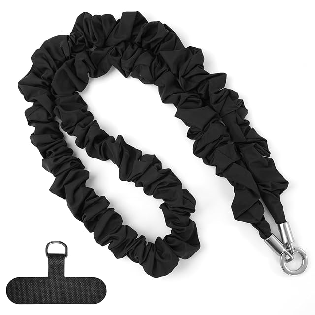 [VEISEN] スマホ ショルダーストラップ スマホストラップ 斜めがけ首掛け肩掛け 全機種対応 ドロスト ギャザー ショルダーベルト 丈夫 男女兼用 大人 かわいい レディース 落下防止 金具付き 斜めがけ 携帯ストラップ ロープ(ブラック)
