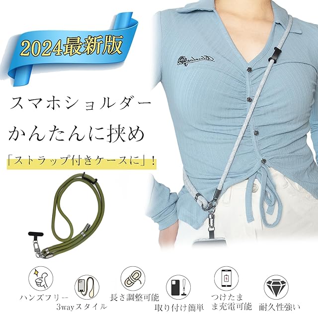 【様々な場面で使えるスマホアクセサリー】 スマホを入れるポケットやバッグがない時に大活躍するスマホショルダーストラップです。ポケットのないファッションでも肩にかけるだけでスマホをサッと取り出せます。両手がふさがる旅行先でも重宝します。日常、スマホ決済もらくらくスムーズ。お子さまから手が離せない時にも役に立ちます。