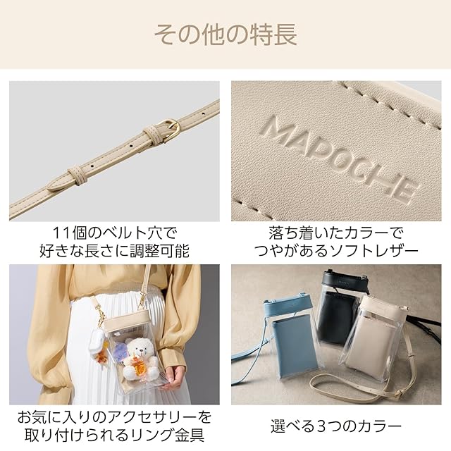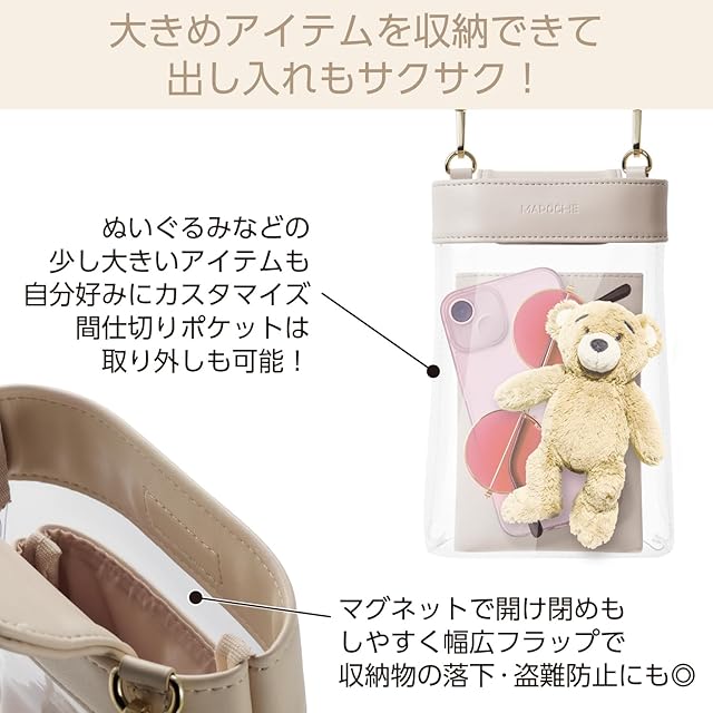商品名:エレコム スマホショルダー スマホポーチ MAPOCHE クリアポケット 肩掛け マグネットフラップ ミルクティーホワイト P-MAP06WH