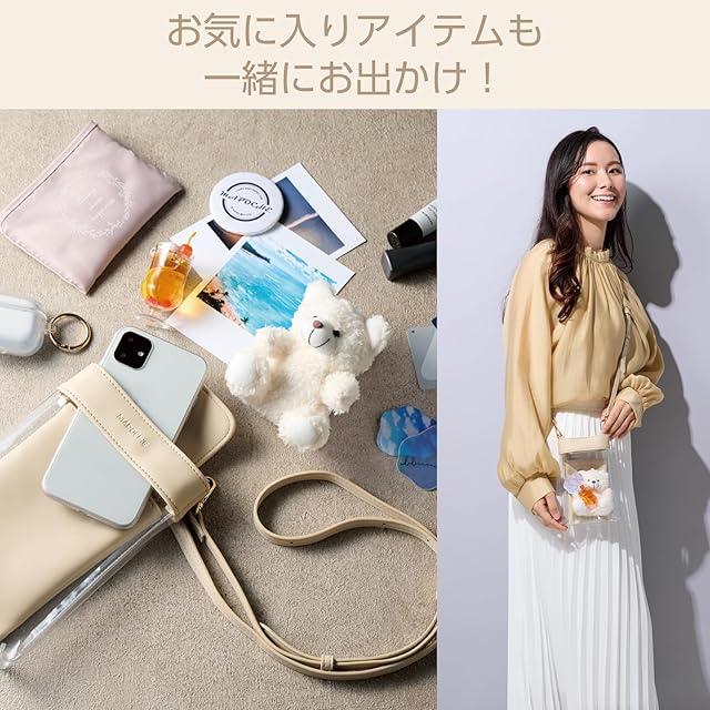 エレコム スマホショルダー スマホポーチ MAPOCHE クリアポケット 肩掛け マグネットフラップ ミルクティーホワイト P-MAP06WH