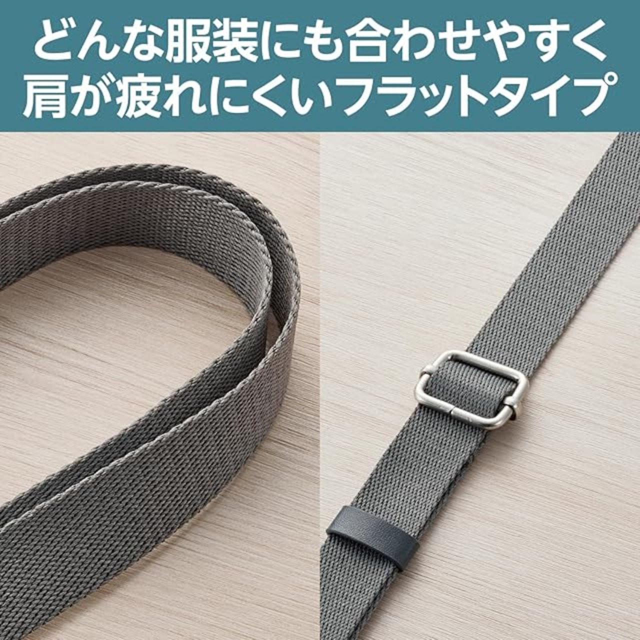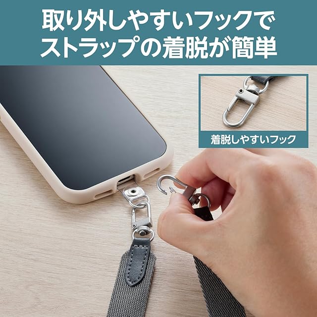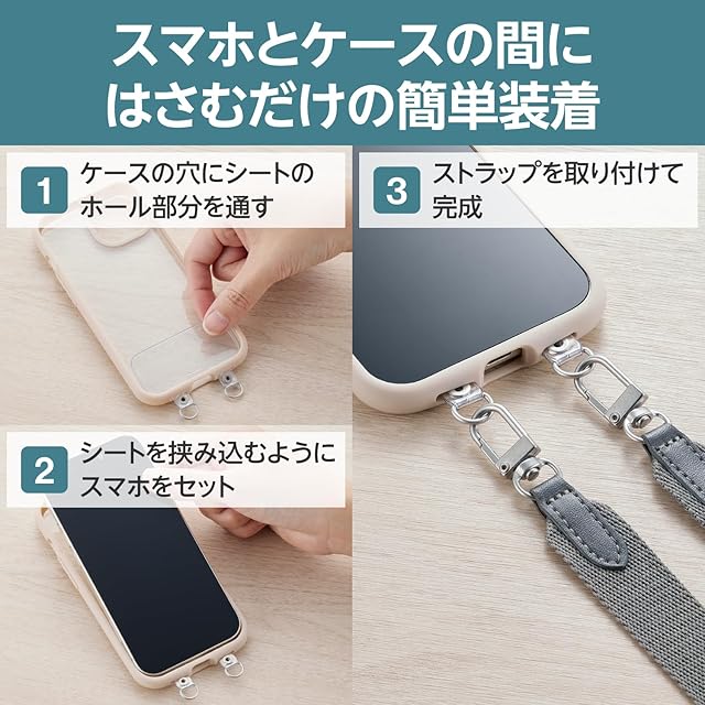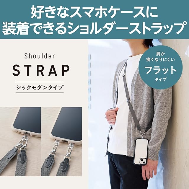 肩から掛けられ、バッグやポケットから取り出さなくてもすぐにスマートフォンの操作ができるフラットタイプのショルダーストラップです。