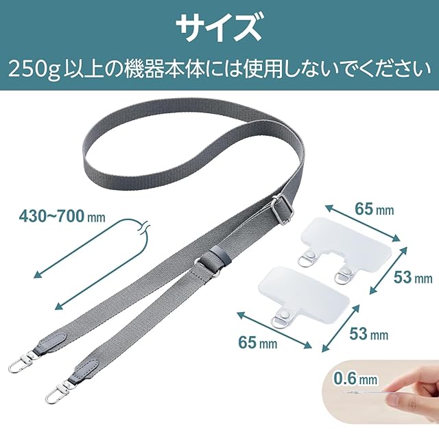 商品名:[エレコム] スマホ ショルダーストラップ 肩掛け 首掛け ストラップホルダー2種類付き フラット 肩が痛くなりにくい ブラック P-STSDH2FBK