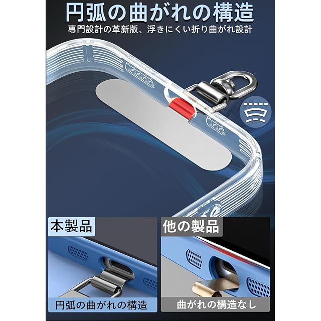 【装着簡単・充電に干渉しない】ケースとスマホの間にタグパッチを挟むだけで簡単に装着可能。ストラップホールが外付けされており、ネックストラップやハンドストラップをお好みで取り付けられます。**薄型設計(0.4mm)**により、ケーブル充電やワイヤレス充電にも干渉しません。防水性能があり、汚れや埃は簡単に拭き取れます。