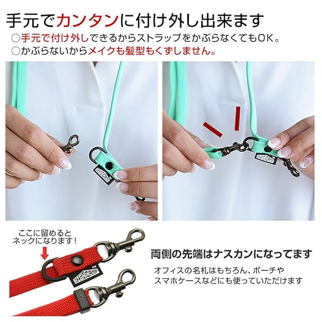 [HIGHCAMP] ハイキャンプ 2way ネック ストラップ 斜め掛け ショルダーストラップ 約70cm~約135cm 長さ調節可能 スマホ 携帯 落下防止 ネックストラップ 日本製 蛍光オレンジ