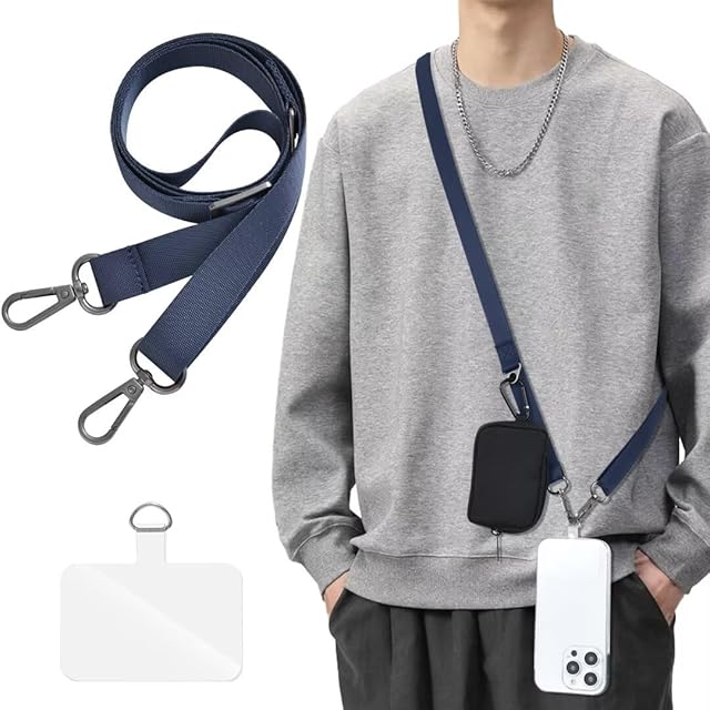 [Shirizu] スマホストラップ 斜めがけ 首掛け 肩掛け スマホ ショルダーストラップ 長さ調節可能 携帯ストラップ 長い 140cm 幅 2cm タグパッチ1枚入り ネックストラップ ショルダー スマホ Strap 軽量 耐久性(ネイビーブルー)
