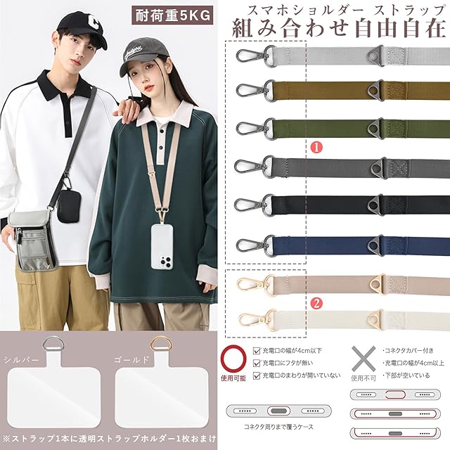 【スマホ首掛けストラップ 紛失防止に】:シンプルで合わせやすいデザインのネックストラップです。携帯ストラップは丈夫な金属製の留め具が付いています。スマホの落下防止に役立ちます。また、ショルダーストラッププやネックストラップなど、お好みに合わせてマルチな使い方ができます。 【セットしやすい】:工具不要でセットできる携帯ストラップです。ストラップホルダーをケースの充電穴に通し、スマホをはめて、ストラップを取り付けるだけでセット完了。※ ご注意:コネクタの周りまで覆わないスマホケースには対応できません。 【長さ調節可能】長めのショルダーストラップはお好きな長さに調節可能。上にスライドで短めに、下にスライドで長めに調節できます。ショルダーの長さ調節可能、長さはちょうどいい快適、いろいろな身長に対応できます。 【ご注意】○商品のお色は撮影時の環境、ディスプレイの発色などにより実物と多少の違いが生じることがございます。予めご了承下さいませ。【安心】出荷時の検品には万全を期しておりますが、万一、不良やお気づきの点がございましたら、【出品者に連絡】をクリックして弊店宛まで直接にお問合せ下さい。