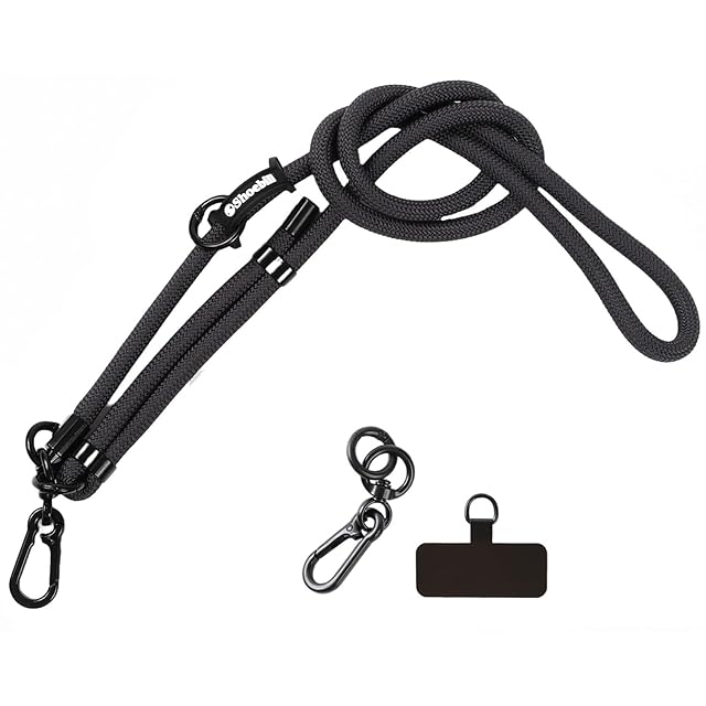 アウトドアロープを使用した、耐久性とファッション性を兼ね備えたスマホショルダーストラップです。 直径10mmと8mmの太めクッションストラップで、首や肩が痛くなりにくく快適。長さ調整機能付きなので、性別・年齢を問わずお使いいただけます。 スマホホルダーは充電口に差し込むだけで簡単装着OK。さらにカラビナも付属し、バッグやポーチに取り付けてショルダーベルトとしても活用可能。 スマホをおしゃれに持ち運びながら、落下や紛失を防止。両手が自由になることで、通勤・買い物・旅行など日常のあらゆるシーンで活躍します。
