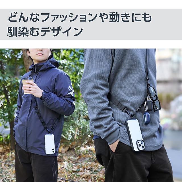 どんなファッションや動きにも馴染み、フィットする幅広フラットタイプのスマホショルダーストラップです。