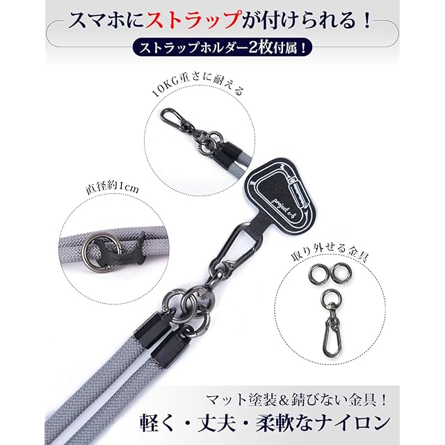 商品名:[project-cb] スマホストラップ ストラップホルダー *2 首掛け ショルダー 斜めがけ 極太 携帯ストラップ アウトドア 落下防止(グレー)